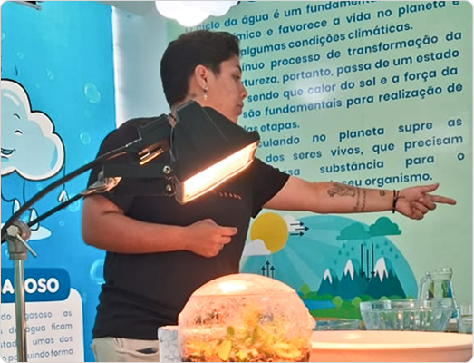 Imersão ao mundo da água através de experimentos lúdicos/práticos relacionados aos principais aspectos do ciclo, dos estados fisicos e de problemáticas da água.